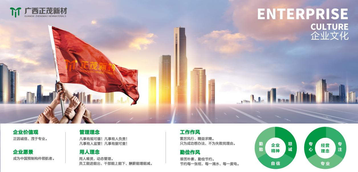 正茂集團(tuán)是一家專業(yè)從事高端混凝土研制的高新技術(shù)企業(yè),創(chuàng)建于2007年,自主研發(fā)混凝土制品30余種,擁有國(guó)家級(jí)專利20余項(xiàng),經(jīng)營(yíng)范圍以新型環(huán)保建筑復(fù)合材料及裝配式建筑預(yù)制構(gòu)件為主體。2019年7月,正茂集團(tuán)正式簽約入駐馬山縣蘇博工業(yè)園區(qū),投資建設(shè)以高鐵、地鐵、市政、電力、水利及裝配式建筑構(gòu)件等為主的生產(chǎn)線項(xiàng)目。...